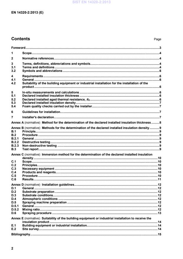 Suitability of the building equipment or industrial installation to receive the insulation product . 14 E.1 Building equipment or industrial installation. 14 E.2 Site survey . 14 Bibliography. 15 SIST EN 14320-2:2013