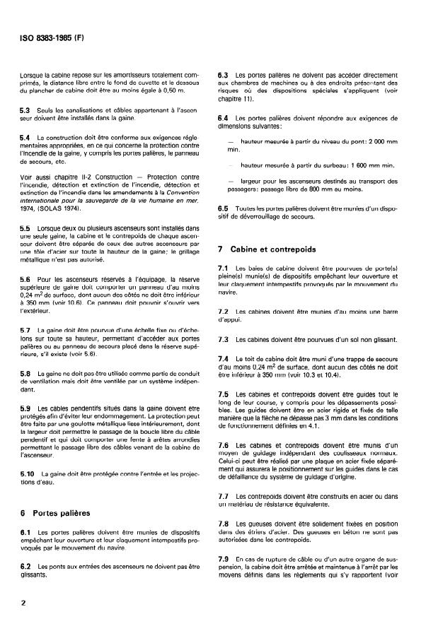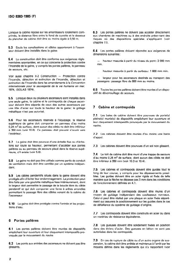 Keywords: ISO 8383 standard, lifts on ships, ship elevator requirements, marine lift safety, ship elevator design, elevator installation, elevator inspection, maritime elevator regulations, SOLAS compliance, marine electrical standards, ship lift maintenance, ship elevator emergency systems.