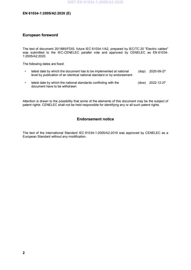 This amendment A2 modifies the European Standard EN 61034-1:2005; it was approved by CENELEC on 2019-12-27. CENELEC