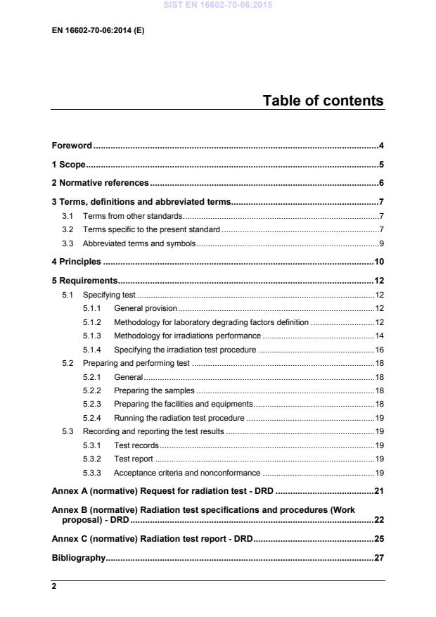 Clause 5.1 provides the specification of the radiation test related to given space simulation test requirements is based on the rationale of degrading factors definition, as described in Figure 4-2. SIST EN 16602-70-06:2015