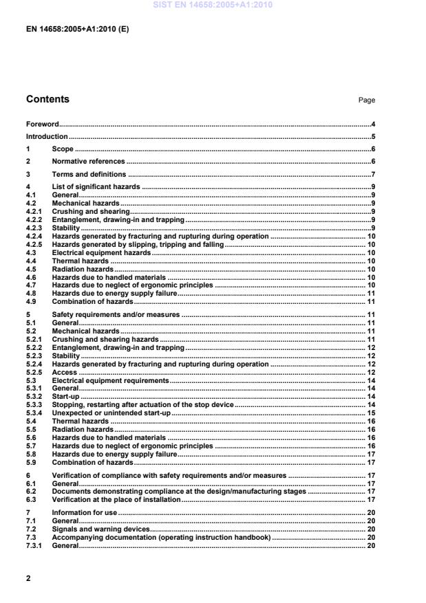 Essential Requirements of EU Directive 2006/42/EC"""" . 30 SIST EN 14658:2005+A1:2010