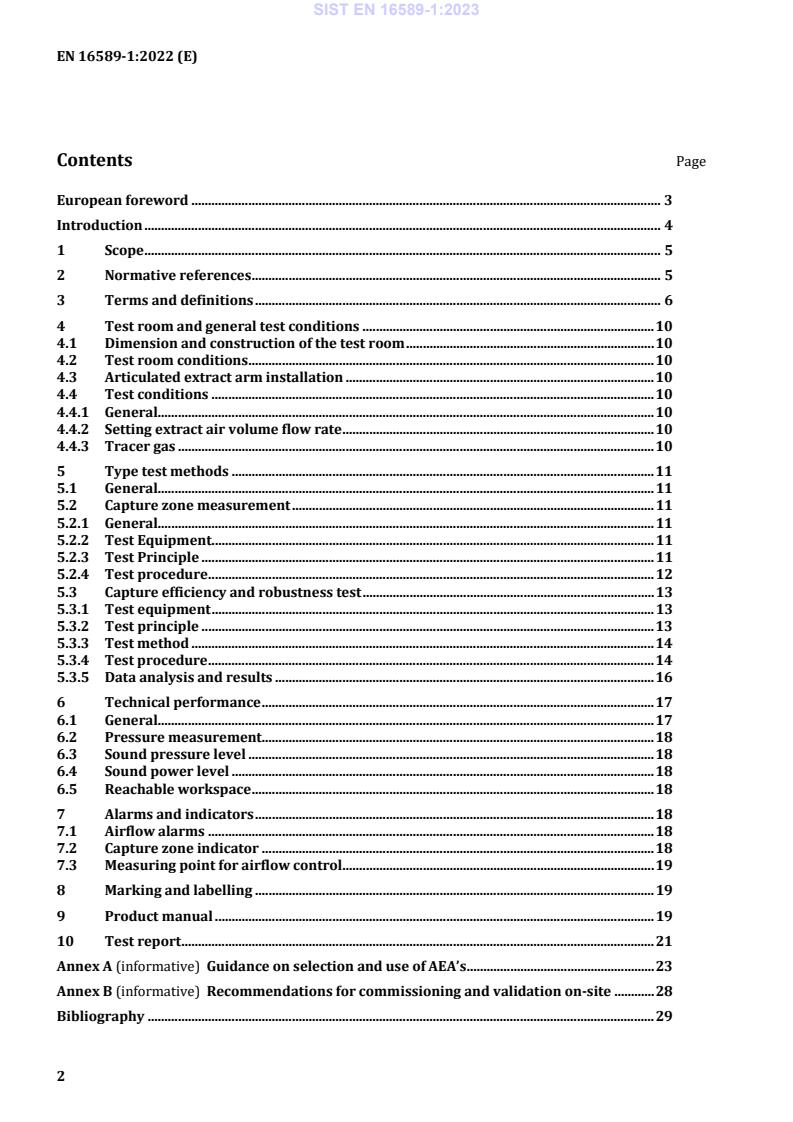 This document applies to an articulated extraction arm used as a local exhaust device in laboratories and comprised of a capture device (receiving, enclosing or capture hood, nozzle or flat screen) connected to an extraction arm which is articulated ducting to move air from the capture device to discharge. This standard specifies: - a method for type testing; - a method to assess the three-dimensional capture zone of local exhaust devices mounted on an articulated extract arm; - a method for assessing the emission release capture efficiency of local exhaust devices connected to an articulated extract arm and its robustness to a challenge of air disturbance directly in front of and in close proximity to the capture hood and release source; - a method for establishing the reachable, three-dimensional workspace of local exhaust devices mounted on an articulated extract arm by measuring the possible positions of the opening of the device; - a method for measuring the pressure drop and noise level in the type test; - instructions for marking the device and recommended content of information for use; - guidance for use describing the limitations of local exhaust devices with articulated extract arm for different airflow rates establishing the capture zone; - guidance on selection, installation, commissioning, and control testing of articulated extract arms and their local exhaust ventilation systems. The scope does not include filtration requirements and impact of fully or partly recirculation of the airflow extracted by an articulated extract arm.