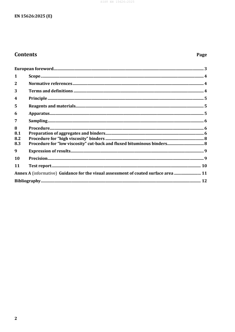 Keywords: SIST EN 15626:2025, bituminous binders, cut-back bitumen, fluxed bitumen, adhesivity test, water immersion test, aggregate method, bitumen adhesion, pavement durability, binder-aggregate compatibility, bitumen standard, CEN standards, road construction materials.