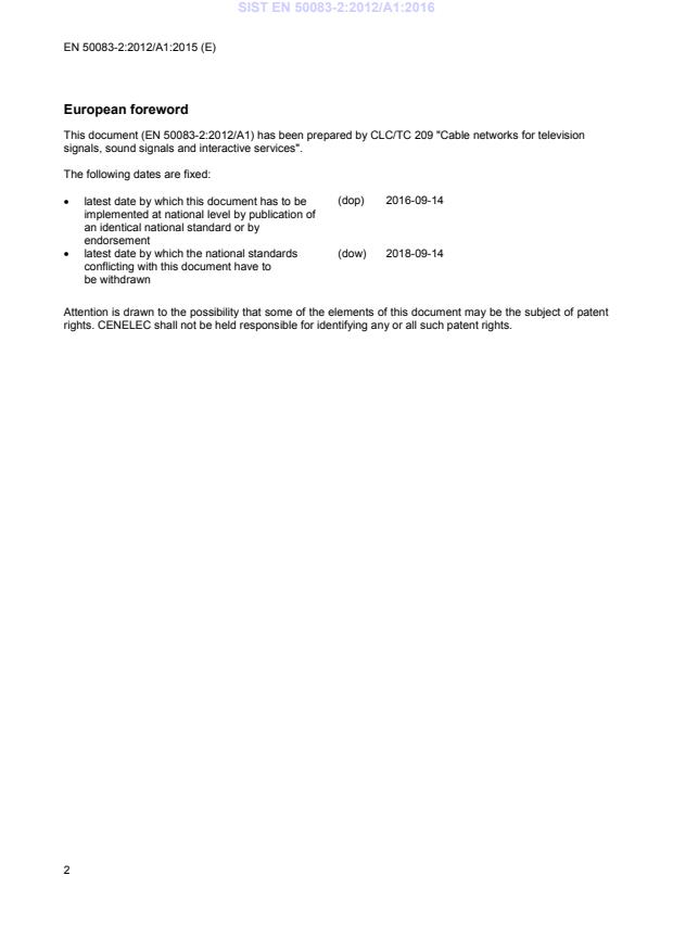This amendment A1 modifies the European Standard EN 50083-2:2012; it was approved by CENELEC on 2015-09-14. CENELEC