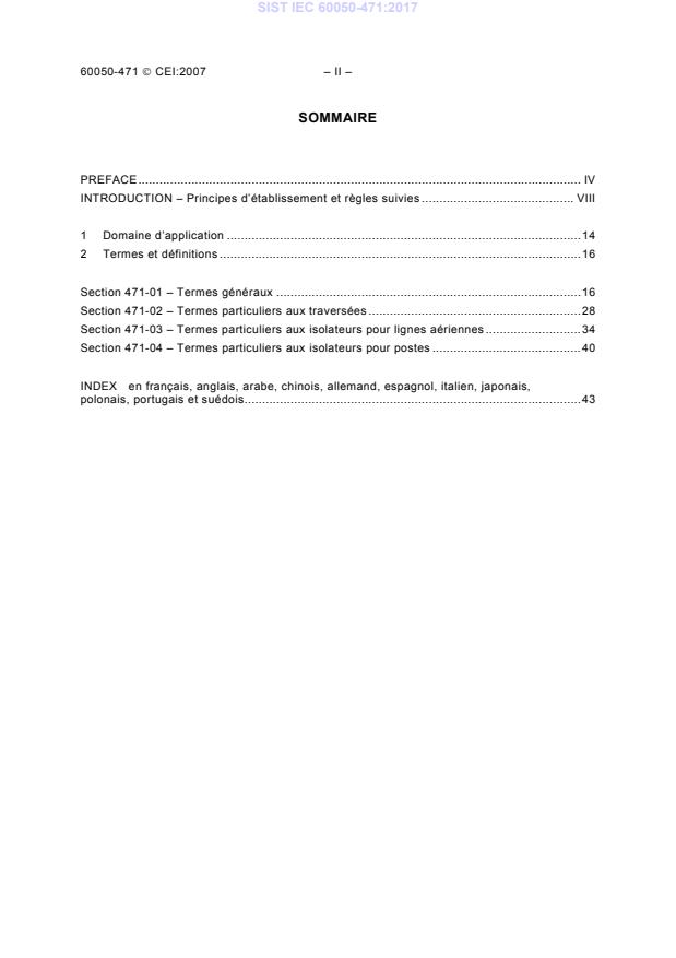 SIST IEC 60050-471:2017 is a standard published by the Slovenian Institute for Standardization (SIST). Its full title is "International Electrotechnical Vocabulary - Chapter 471: Insulators". This standard covers: In some cases, it has been necessary to include in an IEV part a concept taken from another IEV part, or from another authoritative terminology document (VIM, ISO/IEC 2382, etc.), in both cases with or without modification to the definition (and possibly to the term). This is indicated by the mention of this source, printed in lightface, and placed between square brackets at the end of the definition. Example: [131-03-13 MOD] (MOD indicates that the definition has been modified) Terms in additional IEV languages These terms are placed at the end of the entry, on separate lines (one single line for each language), preceded by the alpha-2 code for the language defined in ISO 639, and in the alphabetic order of this code. Synonyms are separated by semicolons.