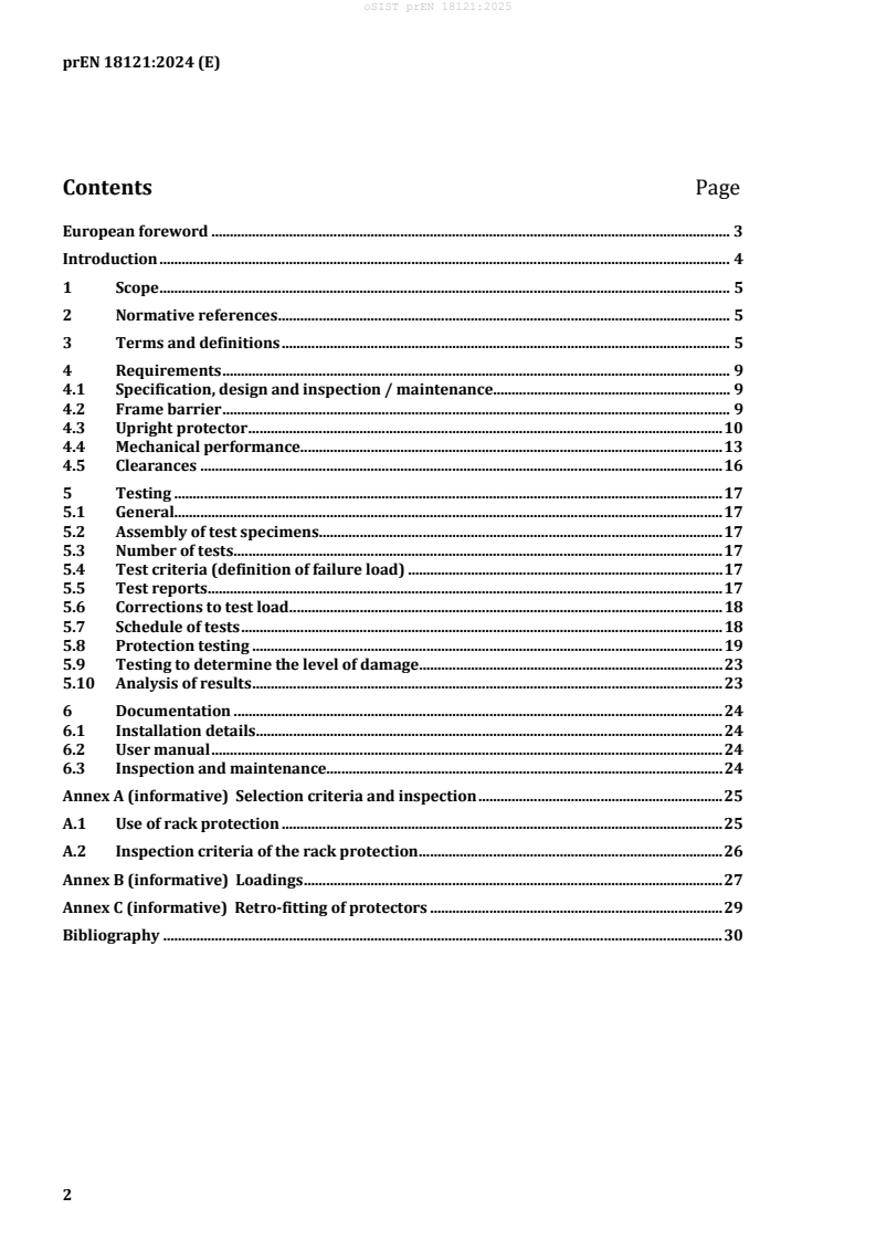 The European Standard oSIST prEN 18121:2025, developed by CEN Technical Committee CEN/TC 344, specifies the design, requirements, and test methods for free standing steel rack protection used in adjustable pallet racking systems. This document focuses on two key components: