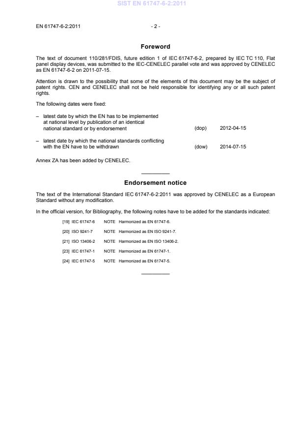 2014-07-15 Annex ZA has been added by CENELEC. __________ Endorsement notice The text of the International Standard IEC 61747-6-2:2011 was approved by CENELEC as a European Standard without any modification. In the official version, for Bibliography, the following notes have to be added for the standards indicated: [19] IEC 61747-6 NOTE