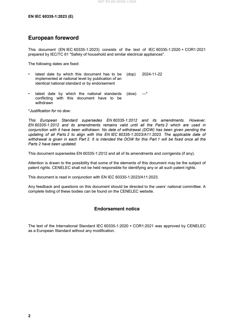 - EN IEC 60335-1:2023 (European text adopted by CENELEC)