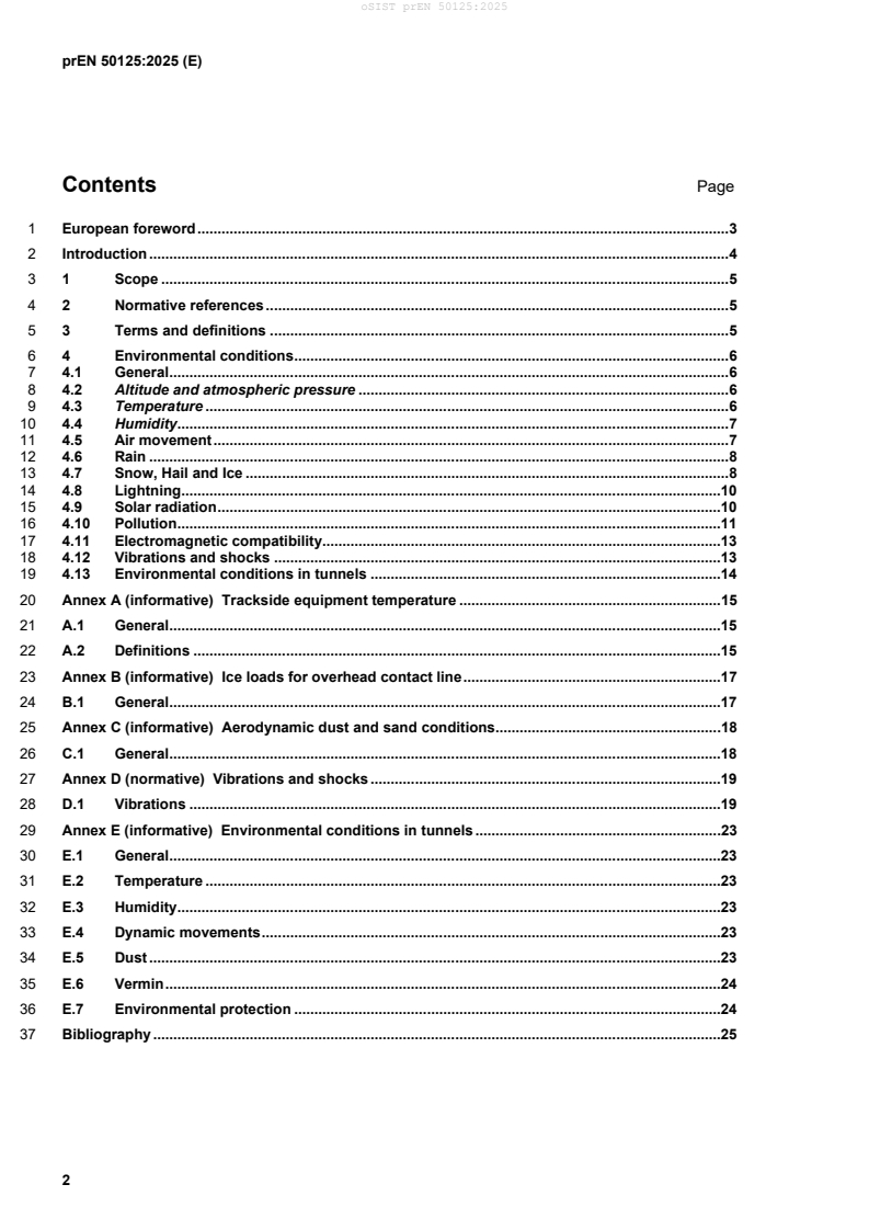 - Lightning, solar radiation, pollution, EMC, vibrations/shocks and tunnel environments are addressed; Annexes provide further guidance (e.g. trackside temperature, ice loads, tunnel conditions).