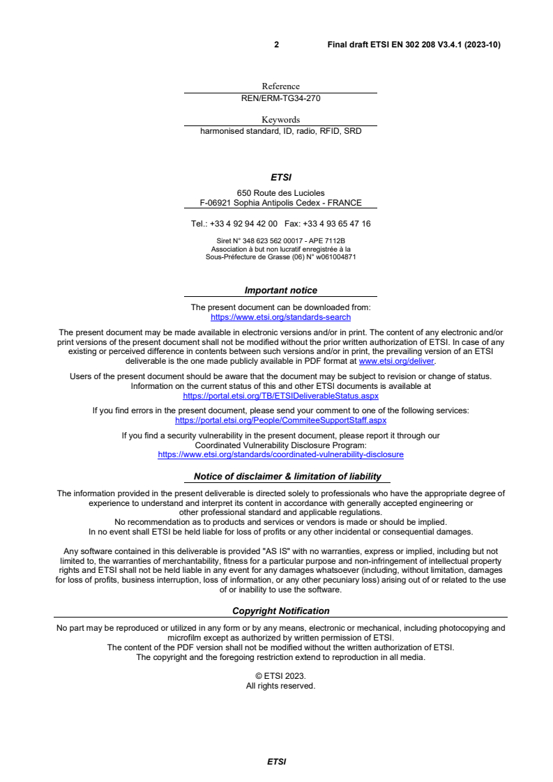 2 ETSI EN 302 208 V3.4.1 (2023-12)