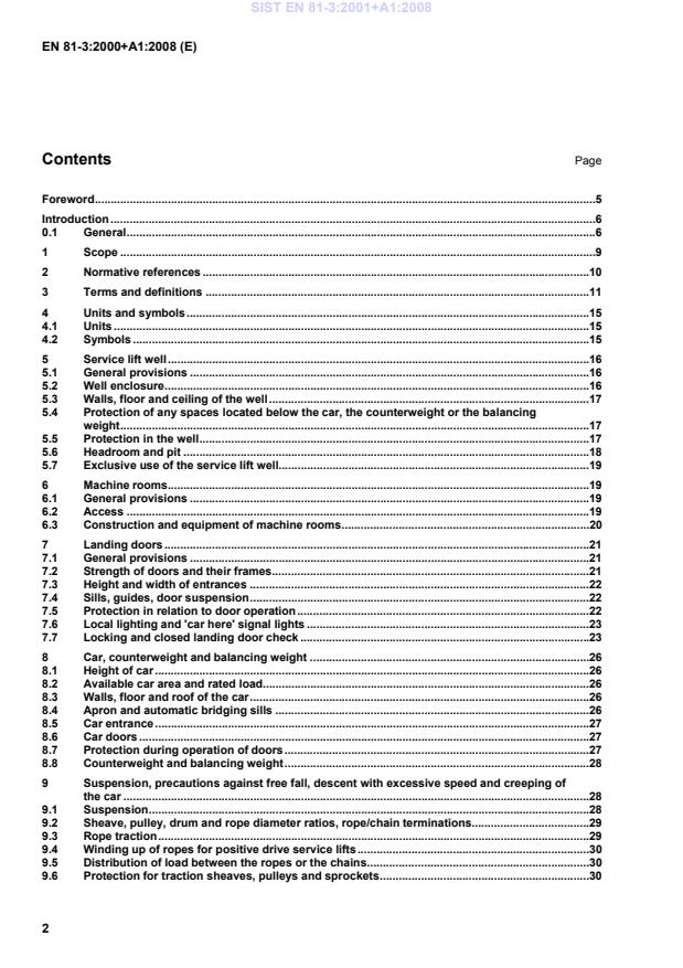 SIST EN 81-3:2001+A1:2008 is a standard published by the Slovenian Institute for Standardization (SIST). Its full title is "Safety rules for the construction and installation of lifts - Part 3: Electric and hydraulic service lifts". This standard covers: 1.1 This standard specifies the safety rules for the construction and installation of permanently installed new electric service lifts with traction or positive drive, or hydraulic service lifts defined as lifting equipment, serving defined landing levels, having a car, the interior of which is regarded as inaccessible to persons on account of its dimensions and means of construction, suspended by ropes or chains or supported by a ram and moving between rigid vertical guide rails or guide rails whose inclination to the vertical does not exceed 15° and driven electrically or hydraulically. This standard covers service lifts with rated load not exceeding 300 kilogrammes and not intended to move persons. 1.2 In addition to the requirements of this standard supplementary requirements shall be considered in special cases (potentially explosive atmosphere, extreme climate conditions, seismic conditions, transporting dangerous goods, etc.). 1.3 This standard does not cover: a) service lifts with drives other than stated in 1.1; b) important modifications (see annex E) to a service lift installed before this standard is brought into application; c) lifting appliances, such as paternosters, mines lifts, theatrical lifts, appliances with automatic caging, skips and hoists for building and public works sites, ships’ hoists, platforms for exploration or drilling at sea, construction and maintenance appliances; d) installations where the inclination of the guide rails to the vertical exceeds 15°; e) safety during transport, installation, repairs and dismantling of service lifts; f) the use of glass for the walls of the well, for the car and for the landing doors including the vision panels. However, this standard may usefully be taken as a basis. Noise and vibrations are not dealt with in this standard because these are not relevant to the safe use of the service lift. Fire propagation is not dealt with in this standard. 1.4 To satisfy the condition of inaccessibili