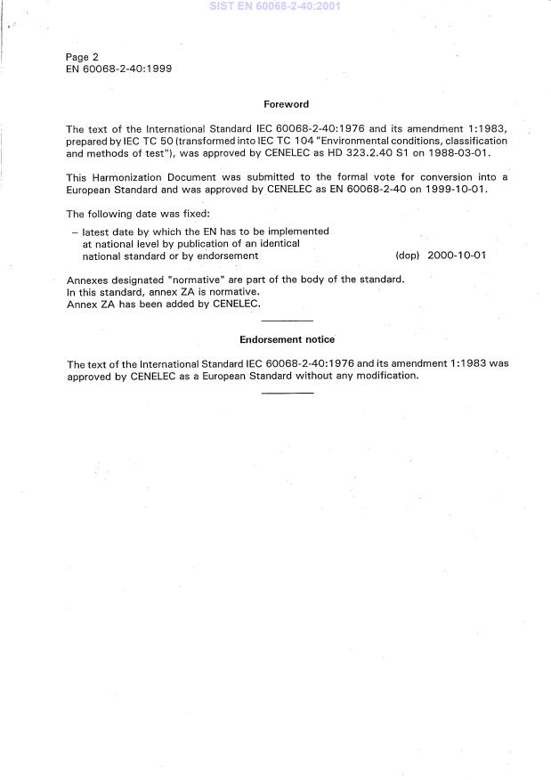 SIST EN 60068-2-40:2001 is classified under the following ICS (International Classification for Standards) categories: 19.040 - Environmental testing. The ICS classification helps identify the subject area and facilitates finding related standards.