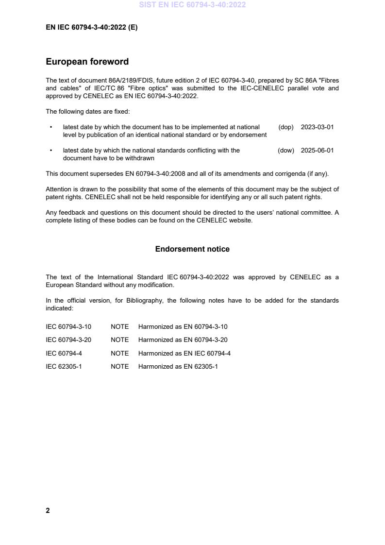 - EN IEC 60794‑3‑40:2022 is the CENELEC/CENELEC‑adopted version of IEC 60794‑3‑40:2022.