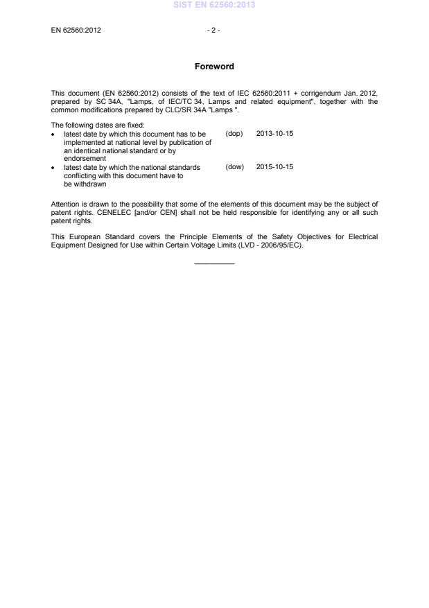 Ta slovenski standard je istoveten z: EN 62560:2012