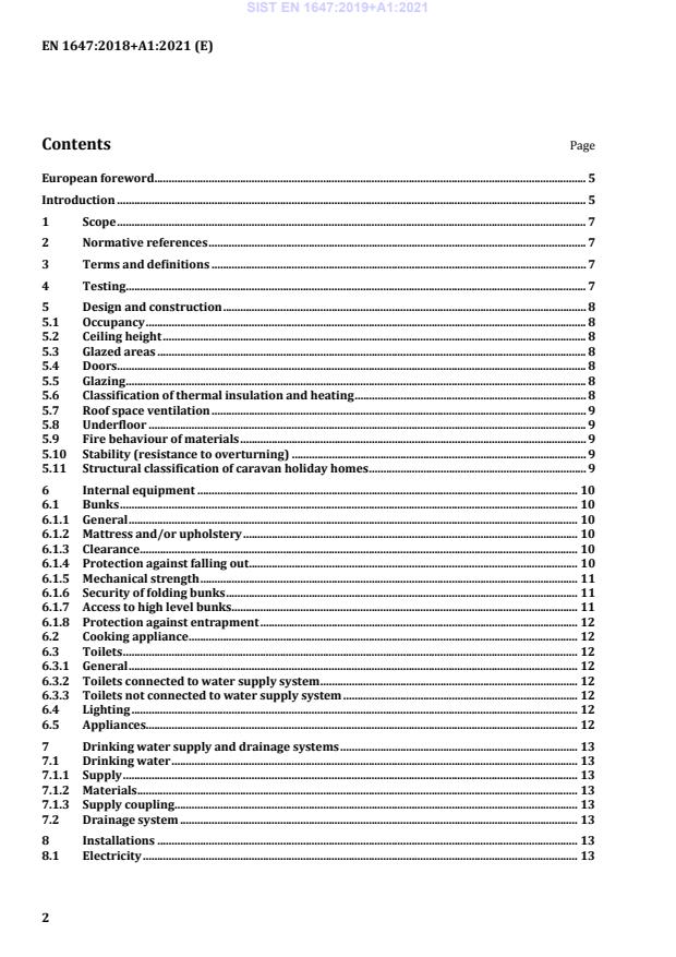 SIST EN 1647:2019+A1:2021 is a standard published by the Slovenian Institute for Standardization (SIST). Its full title is "Leisure accommodation vehicles - Caravan holiday homes - Habitation requirements relating to health and safety". This standard covers: This European Standard specifies requirements intended to ensure safety and health of persons using caravan holiday homes as defined in EN 13878, as temporary or seasonal accommodation. It specifies grades of resistance to snow loads and the stability of the structure of caravan holiday homes as well as the minimum information to be included in a user's handbook. It also specifies the corresponding test methods.