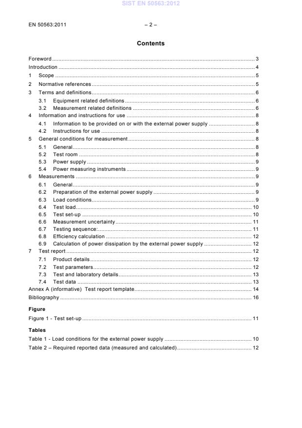 SIST EN 50563:2012 is a standard published by the Slovenian Institute for Standardization (SIST). Its full title is "External a.c. - d.c. and a.c. - a.c. power supplies - Determination of no-load power and average efficiency of active modes". This standard covers: This European Standard specifies methods of measurement of electrical power consumption, and the reporting of results, for external power supplies. This standard is applicable to external power supplies with a rated input voltage within the range 100 V ac to 250 V ac having a single output with a rated output power not exceeding 250 W and a rated output voltage not exceeding 230 V a.c. or 325 V d.c. The output voltage may be either at a fixed voltage, or at a voltage which is user selectable, or at a voltage that is automatically selectable by the external power supply so as to be compatible with one or more product-loads.