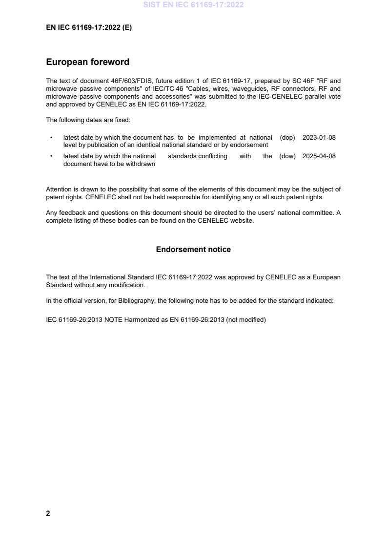 - EN adoption: EN IEC 61169‑17:2022 (CENELEC/CLC endorsement).