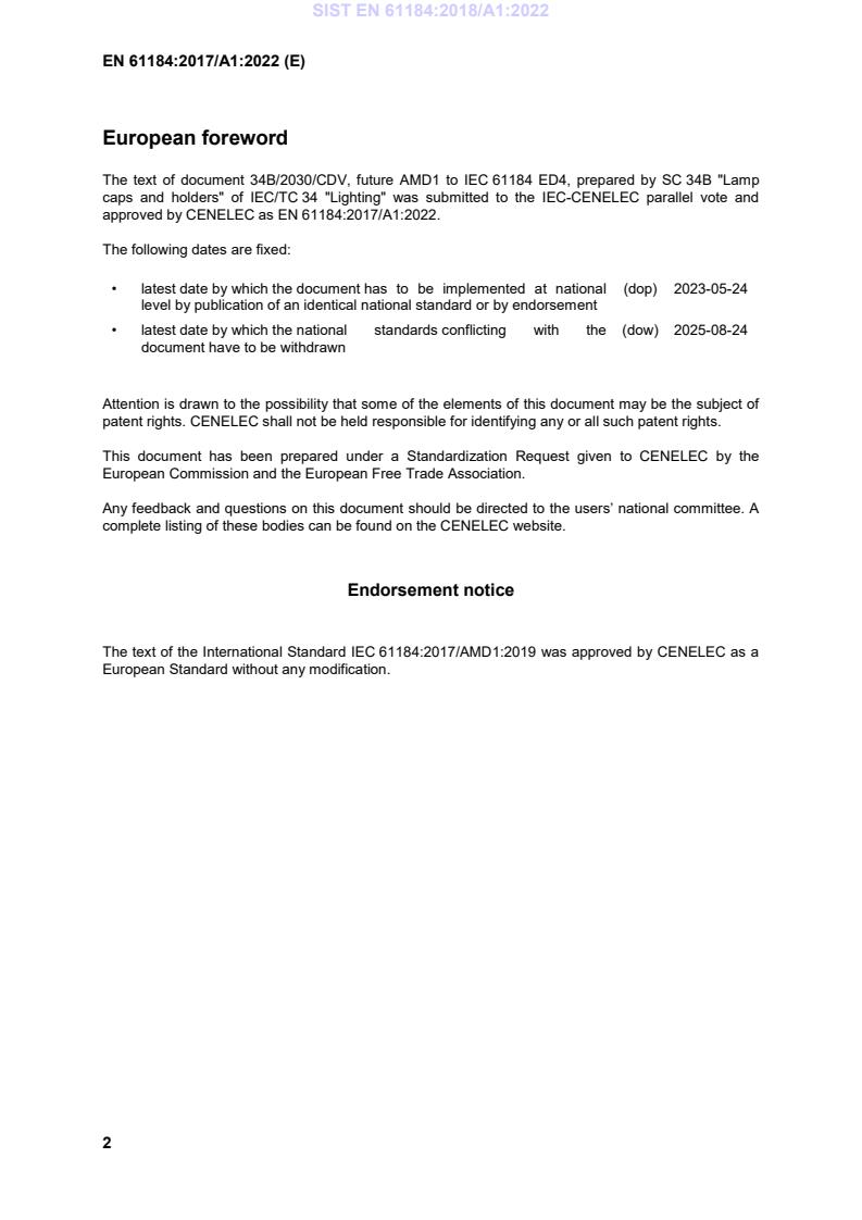- CENELEC adoption and national standards references (EN 61184:2017 and amendment A1)
