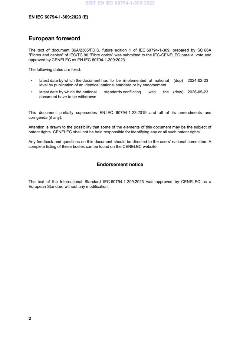 OPOMBA: V tem dokumentu lahko izraz »optični kabel« vključuje tudi optične enote, mikrokanale itd. Prva izdaja standarda IEC 60794-1-309 razveljavlja in nadomešča metodo G9 iz druge izdaje standarda IEC 60794-1-23, objavljenega leta 2019. Ta izdaja v primerjavi s prejšnjo vključuje naslednje pomembne tehnične spremembe: