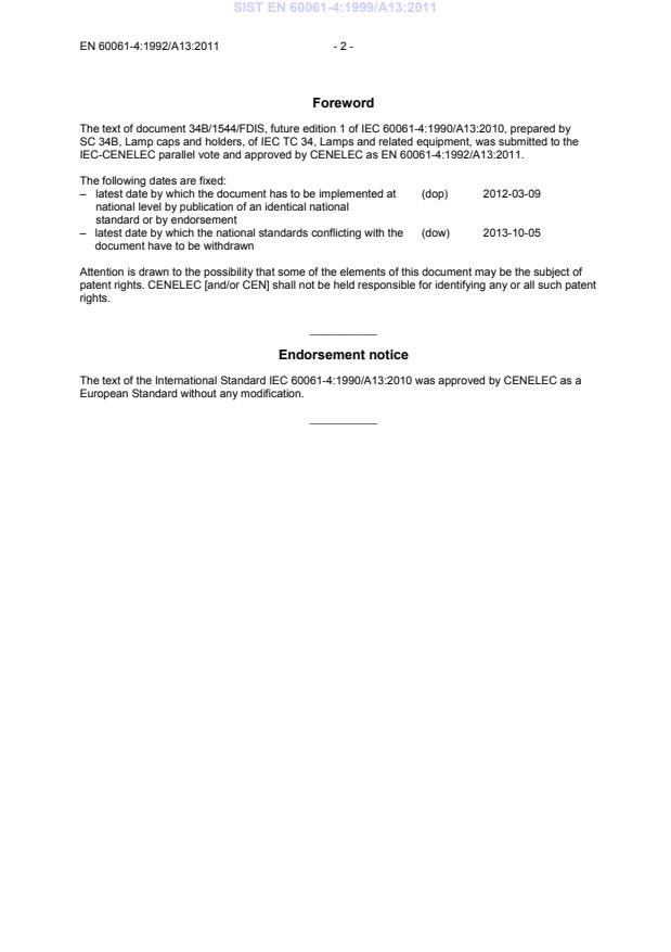 This amendment A13 modifies the European Standard EN 60061-4:1992; it was approved by CENELEC on