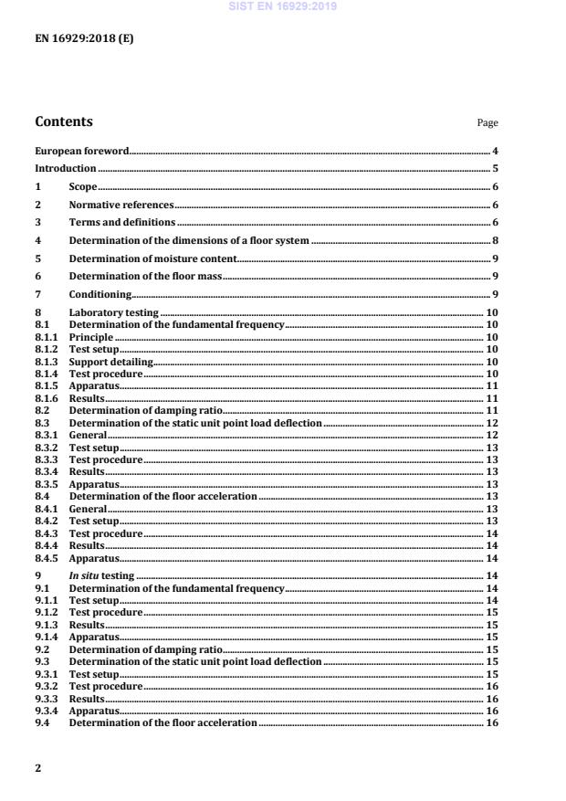 SIST EN 16929:2019 is a standard published by the Slovenian Institute for Standardization (SIST). Its full title is "Test methods - Timber floors - Determination of vibration properties". This standard covers: This document specifies test methods for the determination of natural frequencies, damping, unit point load deflection and acceleration of floors composed of sawn timber, engineered wood products, and mass timber beams or slabs (e.g. cross laminated timber CLT, glued laminated timber GL, nail laminated timber), with or without concrete screeds, as well as for timber-concrete composite floors.