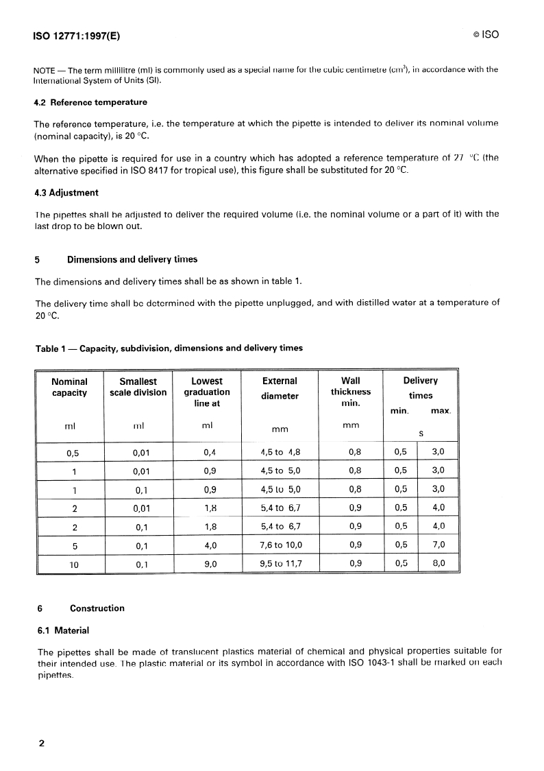 - Material and marking: Pipettes must be made of translucent plastics suitable for intended use; the plastic type or ISO 1043-1 symbol must be marked on each pipette or packaging.