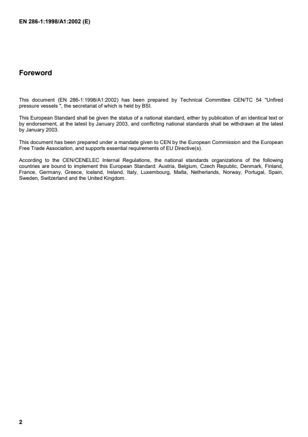 This amendment A1 modifies the European Standard EN 286-1:1998; it was approved by CEN on 11 April 2002.
