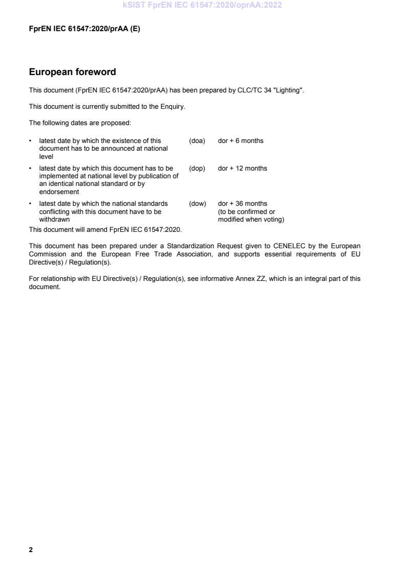 This document (FprEN IEC 61547:2020/prAA) has been prepared by CLC/TC 34 "Lighting".