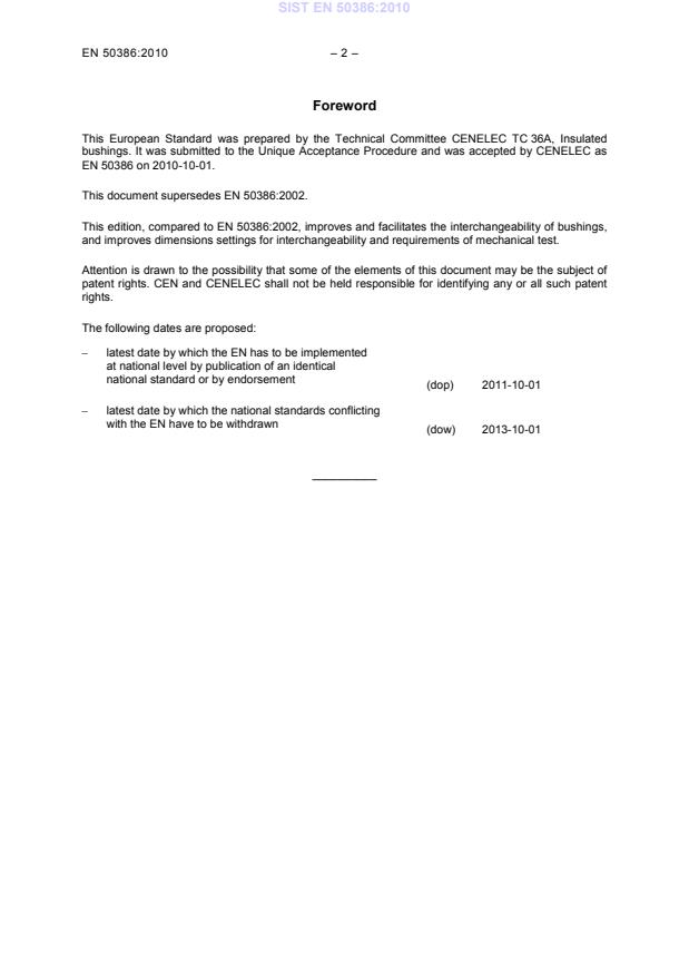 Slovenski standard SIST EN 50386:2010 je prevod evropskega standarda EN 50386:2010. V primeru