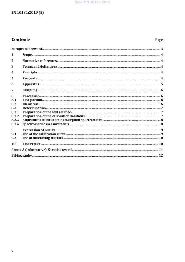 SIST EN 10181:2019 is a standard published by the Slovenian Institute for Standardization (SIST). Its full title is "Steels - Determination of lead content - Flame atomic absorption spectrometric method (FAAS)". This standard covers: This document specifies a flame atomic absorption spectrometric method (FAAS) for the determination of lead content in non-alloy and low alloy steels. The method is applicable to lead contents between 0,005 % (weight percent) and 0,5 % (weight percent). The method can be adapted to lower or higher lead contents by changing the test portion or the dilution process, provided the criteria in 6.2.2 and 6.2.3 are still met.