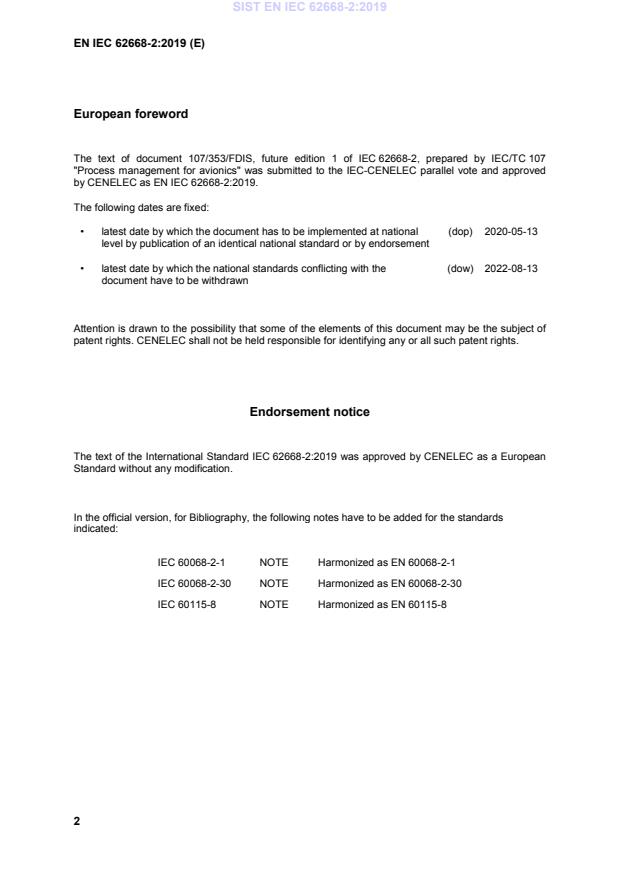 SIST EN IEC 62668-2:2019 is a standard published by the Slovenian Institute for Standardization (SIST). Its full title is "Process management for avionics - Counterfeit prevention - Part 2: Managing electronic components from non-franchised sources (IEC 62668-2:2019)". This standard covers: IEC 62668-2:2019, defines requirements for avoiding the use of counterfeit, recycled and fraudulent components when these components are not purchased from the original component manufacturer (OCM) or are purchased from outside of franchised distributor networks for use in the aerospace, defence and high performance (ADHP) industries. This practice is used, as derogation, only when there are no reasonable or practical alternatives. NOTE: Typically this document is used in conjunction with IEC 62239-1 and IEC 62668-1, enabling ADHP industries to manage and avoid the use of counterfeit, recycled and fraudulent components in their supply chains. Although developed for the ADHP industry, this document can be used by other high-performance and high-reliability industries, at their discretion. This first edition cancels and replaces the second edition of IEC TS 62668-2 published in 2016. This edition constitutes a technical revision. This edition includes the following significant technical changes with respect to the second edition of IEC TS 62668-2: a) updates to the risk assessment process, including reference to SAE AS6081; b) updates to the test methods, including reference to the SAE AS6171 test methods published and in development; c) updates in line with IEC 62668-1 for definitions and references to DFARS.