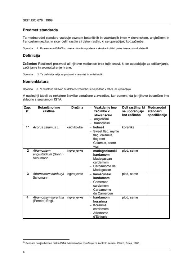 Keywords: ISO 676:1995, botanical nomenclature, spices and condiments, botanical names, common names, ISTA, spice labeling, international standard.