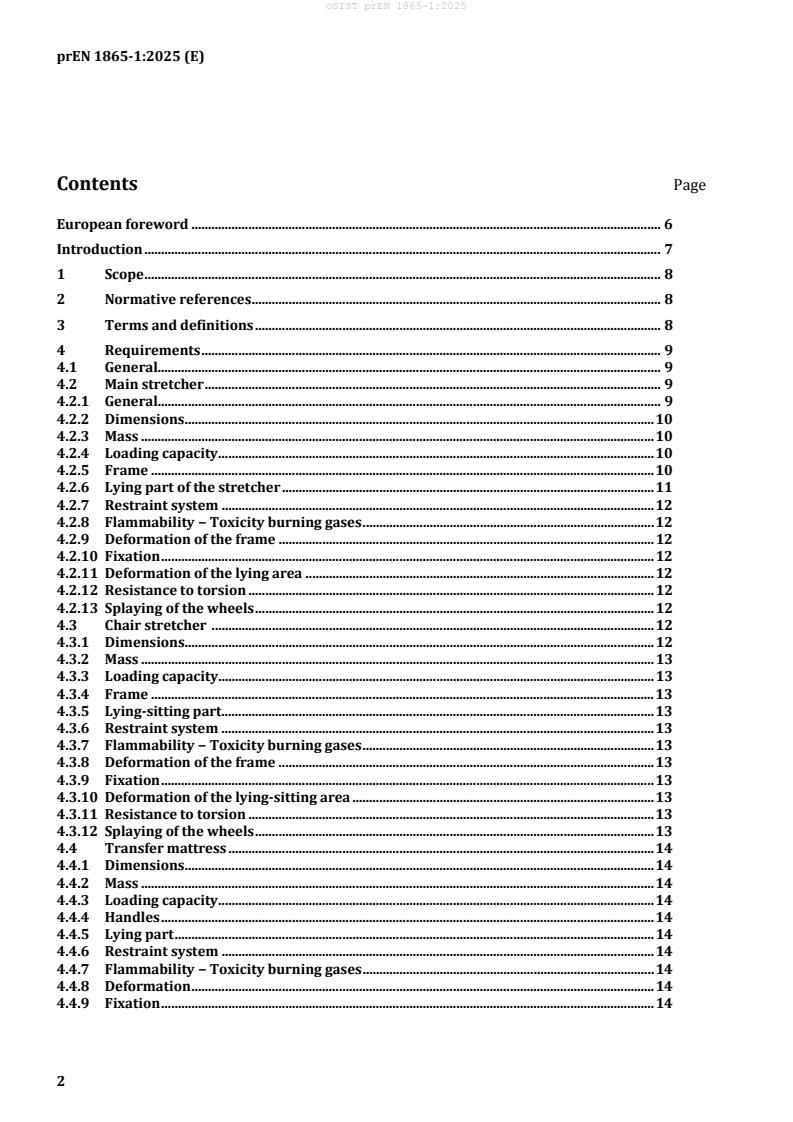 - Scope and definitions - normative references, terms and definitions specific to ambulance patient handling equipment.