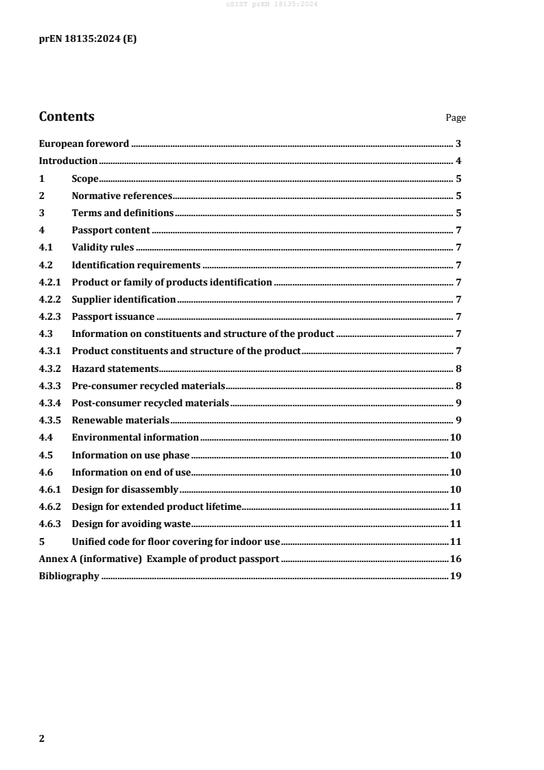 Keywords: circular economy, product passport, floor coverings, resilient flooring, textile flooring, laminate, modular locking systems, environmental information, reuse, recycling, sustainable flooring, product identification, CEN standard, REACH compliance, hazardous substances, pre-consumer recycled material, post-consumer recycled material, renewable materials.