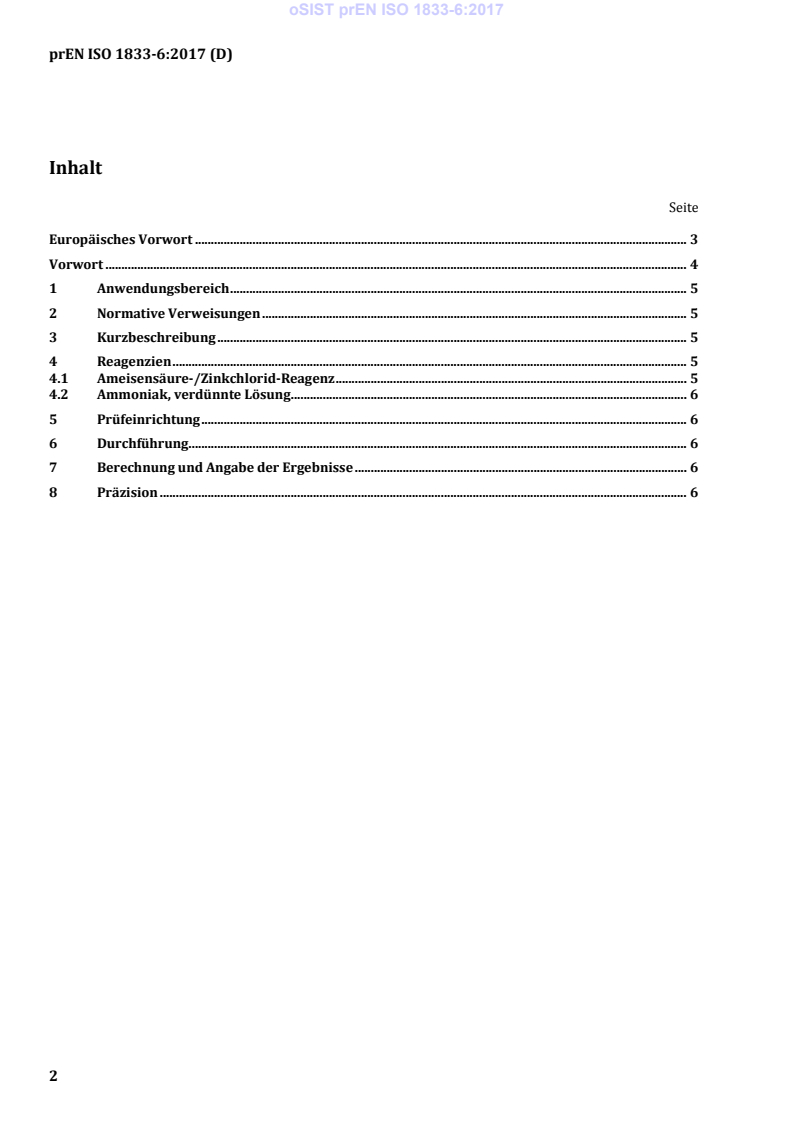 © 2017 CEN Alle Rechte der Verwertung, gleich in welcher Form und in welchem Ref. Nr. prEN ISO 1833-6:2017 D