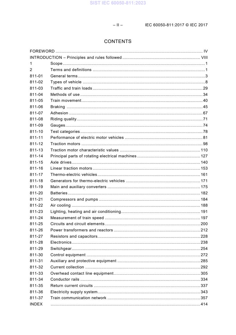 SIST IEC 60050-811:2023 covers a broad range of crucial subjects related to electric traction, organized into detailed sections that address the following: