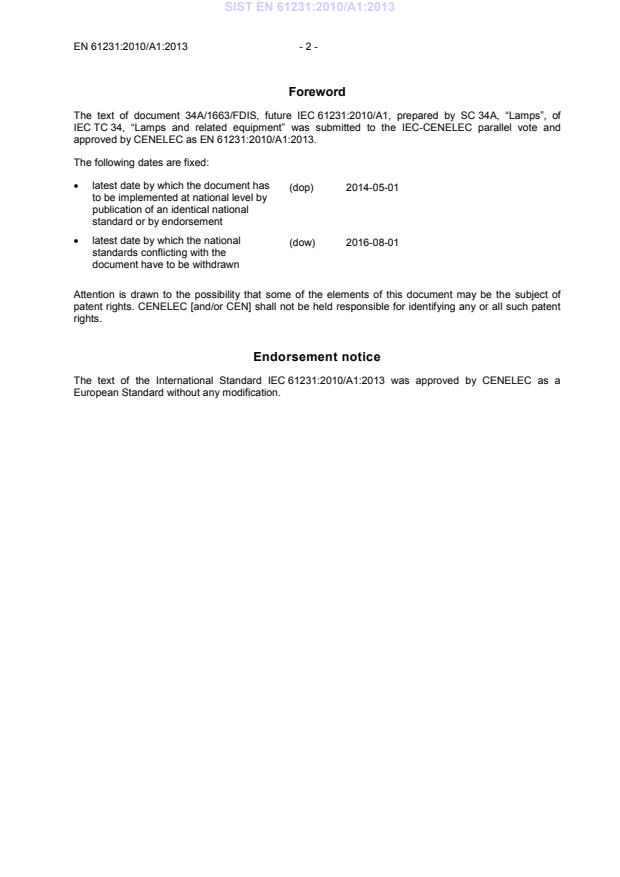 - Amendment A1 modifies EN 61231:2010; applies to lamp designation across incandescent, fluorescent, sodium, mercury, metal halide and LED product classes.