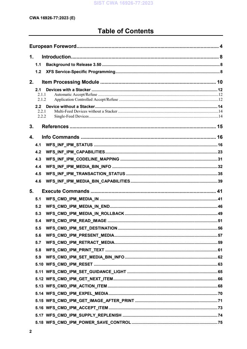 SIST-TP CWA 16926-77:2023 is the Item Processing Module (IPM) Device Class Interface programmer’s reference for the XFS (Extensions for Financial Services) Release 3.50 family. This CWA documents the migration changes from XFS version 3.40 to 3.50 specifically for the IPM device class (mixed-media processing used in ATMs and teller equipment). It is intended for developers and integrators who need to update service providers, device drivers (SPI), and applications to conform to the 3.50 interface behavior and new or changed commands, events and data structures.