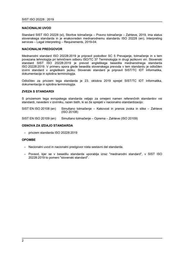 Keywords: SIST ISO 20228:2019, legal interpreting, interpreting services, interpreter competences, interpreting modes, remote interpreting, consecutive interpreting, simultaneous interpreting, sign language interpreting.