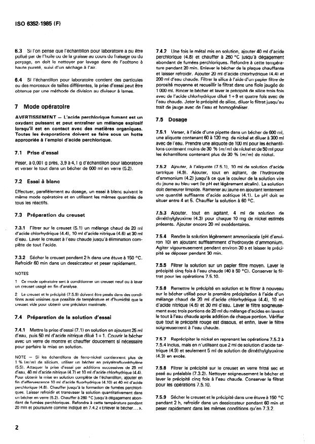 2 Le creuset et le précipité (7.5.9) doivent être pesés dans des condi-