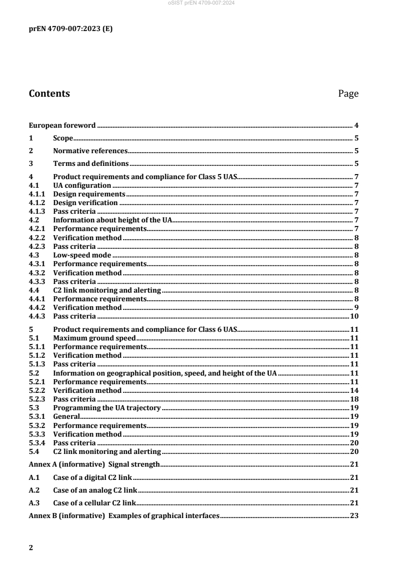 Keywords: FprEN 4709-007, Unmanned Aircraft Systems, UAS classes C5 C6, product requirements, C2 link monitoring, low-speed mode, GNSS, CEN, CE marking, UAS verification methods.