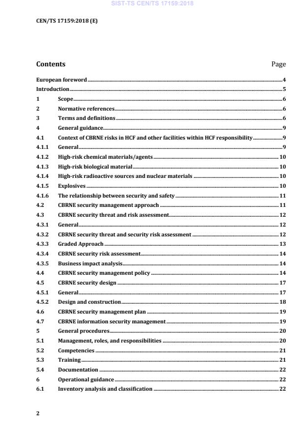Keywords: CEN/TS 17159:2018, CBRNE security in healthcare, security of hazardous materials, hospital security, CBRNE lifecycle, design basis threat, supply chain security, incident response.