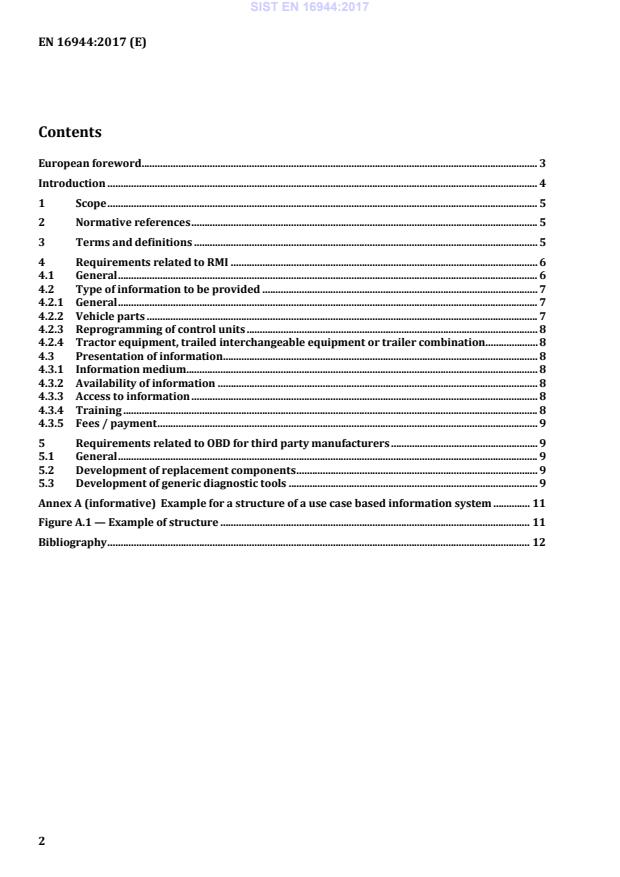 SIST EN 16944:2017 is a standard published by the Slovenian Institute for Standardization (SIST). Its full title is "Agricultural machinery and tractors - Standardized access to repair and maintenance information (RMI) - Requirements". This standard covers: This European Standard specifies the requirements to be fulfilled by manufacturers of tractors, interchangeable towed equipment and trailers used in agriculture and forestry in order to comply with the obligation to provide non-discriminatory access for independent operators to Repair and Maintenance Information (RMI) and to provide information on On-Board Diagnostic (OBD) systems. This standard specifies all organisational and technical requirements and means of verification to comply with the EU Regulation 167/2013 and its Delegated Acts with the objectives to allow the fair competition between manufacturers and between operators and to improve the competitiveness and future viability of companies with special regard to Small and Medium-sized Enterprises (SME). This European Standard is applicable to agricultural and forestry vehicles approved (respectively to be approved) in accordance with the EU Regulation 167/2013. This European Standard is not applicable to small series vehicles.