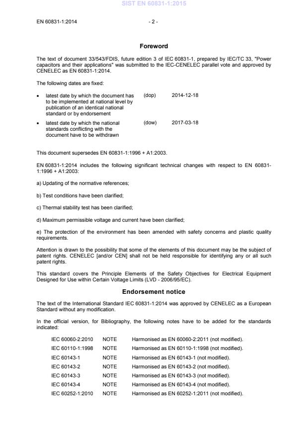 SIST EN 60831-1:2015 has the following relationships with other standards: It is inter standard links to SIST EN 60831-1:1999/A1:2003, SIST EN 60831-1:1999, SIST EN 60831-1:2015/AC:2015. Understanding these relationships helps ensure you are using the most current and applicable version of the standard.