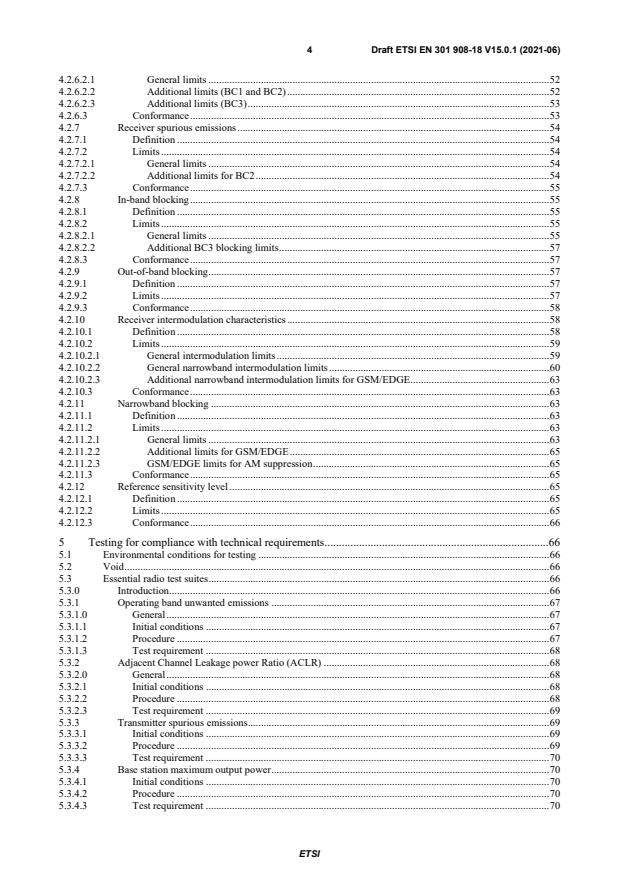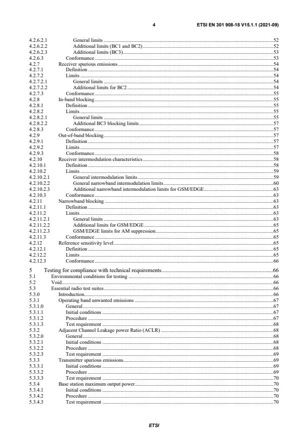 - Testing for compliance: essential radio test suites, environmental conditions, and measurement methods (detailed conformance testing procedures are provided in the standard).