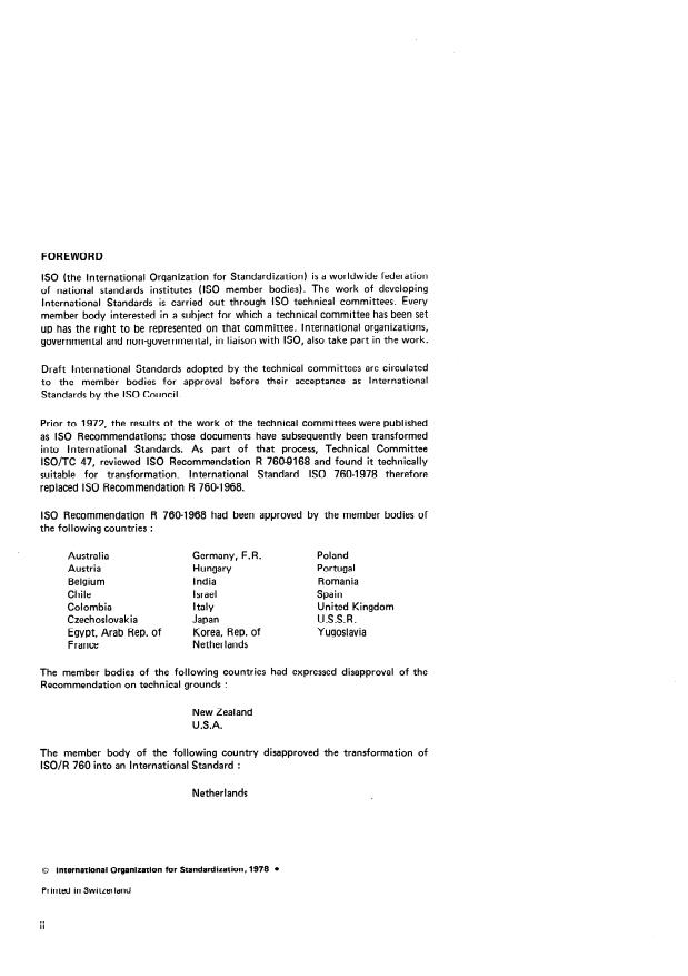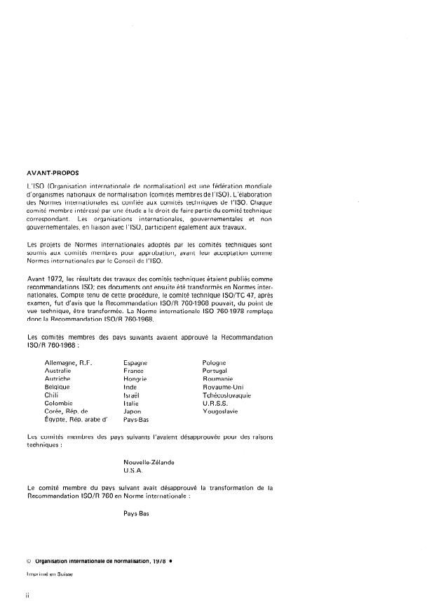 IS0 Recommendation R 760-1968 had been approved by the member bodies of
