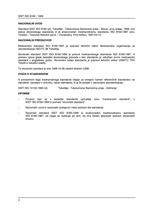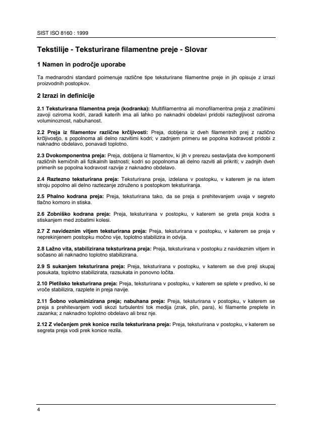 Standard SIST ISO 8160 (sl), Tekstilije - Teksturirane filamentne preje - Slovar, prva izdaja, 1999, ima