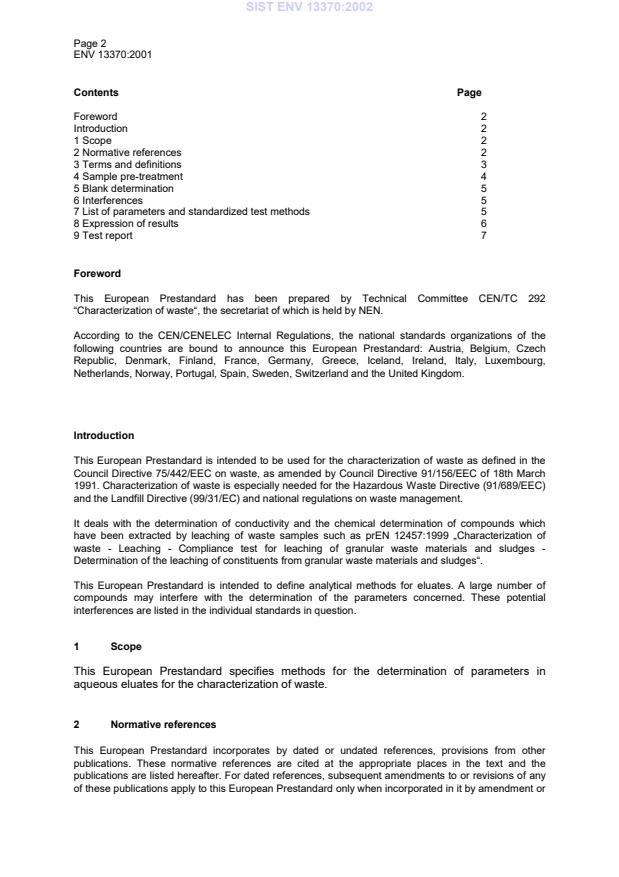 SIST ENV 13370:2002 is a standardization document published by the Slovenian Institute for Standardization (SIST). Its full title is "Characterization of waste - Analysis of eluates - Determination of Ammonium - N, AOX, conductivity, Hg, phenol index, TOC, CN- easily liberatable, F-". This standard covers: This European Standard specifies methods for the determination of parameters in aqueous eluates for the characterisation of waste.
