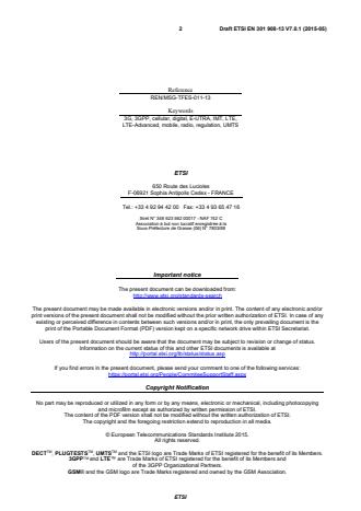 2 Draft ETSI EN 301 908-13 V7.0.1 (2015-05)