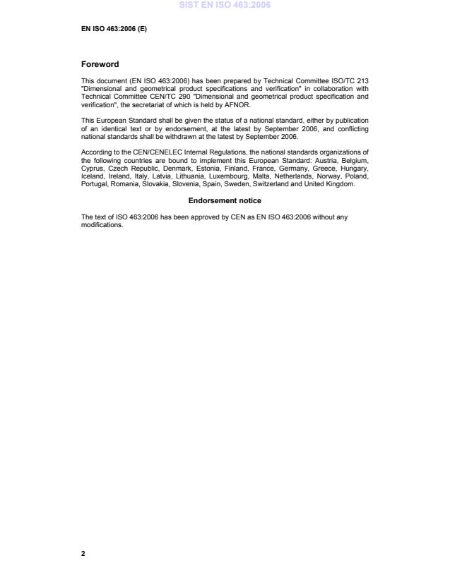 This document (EN ISO 463:2006) has been prepared by Technical Committee ISO/TC 213 "Dimensional and geometrical product specifications and verification" in collaboration with Technical Committee CEN/TC 290 "Dimensional and geometrical product specification and verification", the secretariat of which is held by AFNOR.